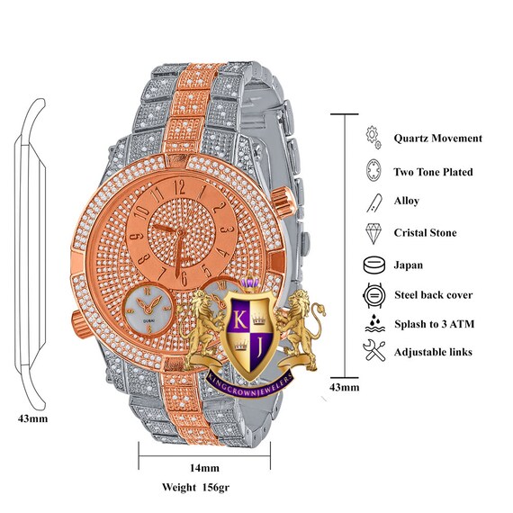 Men S 14k 2 Tone Rose Gold Finish Simulated Diamond Water Etsy
